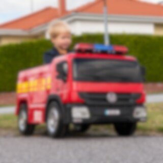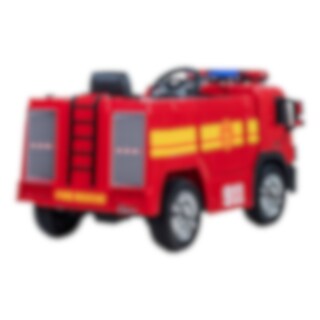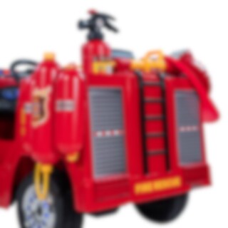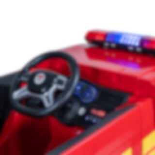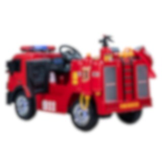 Der er noget specielt ved brandbiler ? er det ikke rigtigt? De fleste børn giver i al fald lange blinke efter de seje røde biler med blålys og masser af seje funktioner. Nu kan du give dit barn muligheden for selv at give sig ud på udrykning i sin helt egen brandbil! Denne her bil har masser af seje detaljer og funktioner. Blålyset virker selvfølgelig så at omgivelserne har en chance for at springe til siden når der er udrykning. Bilen har endda solide EVA-dæk, til forskel fra hule dæk af hård plastik, som mange andre elbiler for børn har. EVA-dæk giver mere stille drift på asfalt og længere holdbarhed. Indbygget stereo med en omgang forudindspillede.