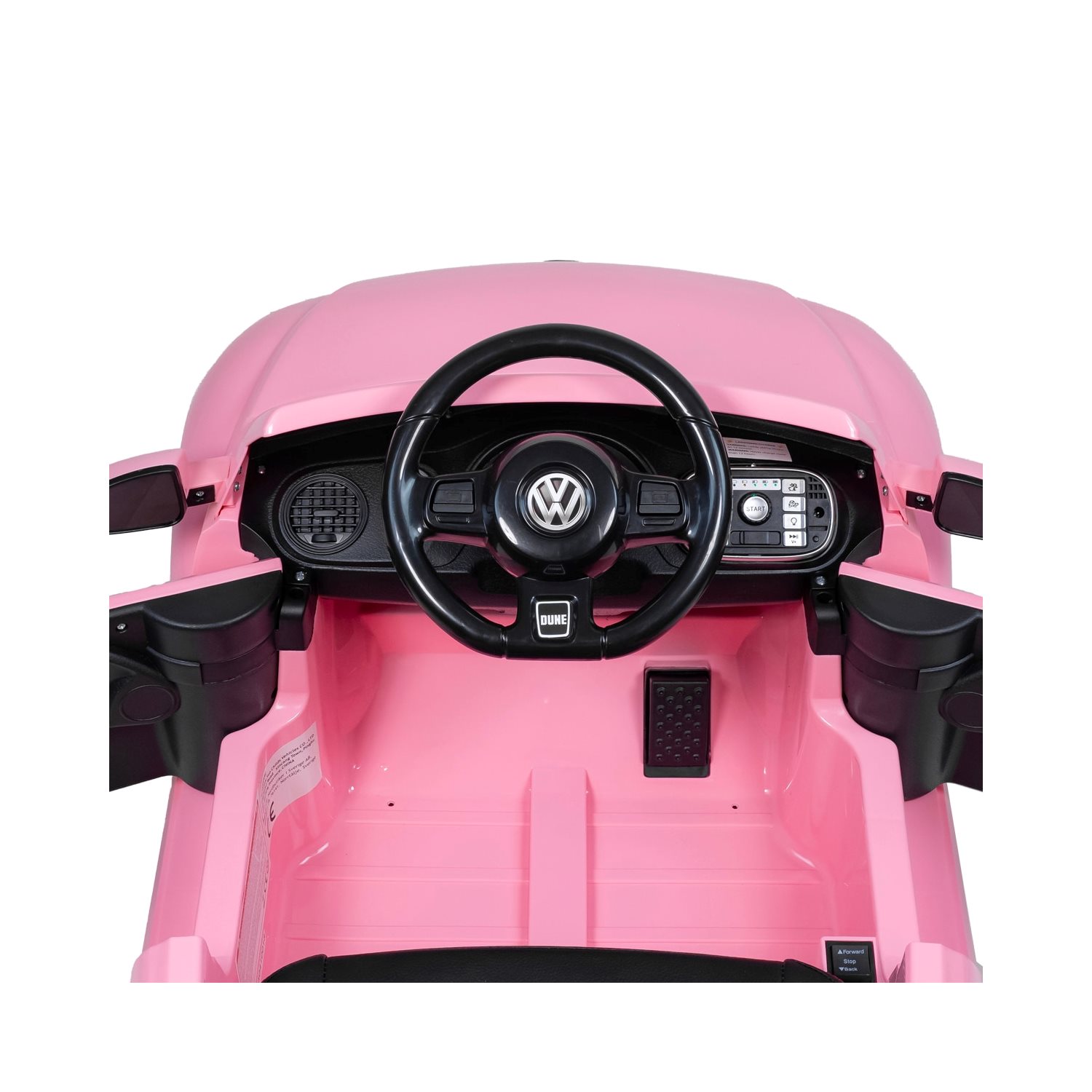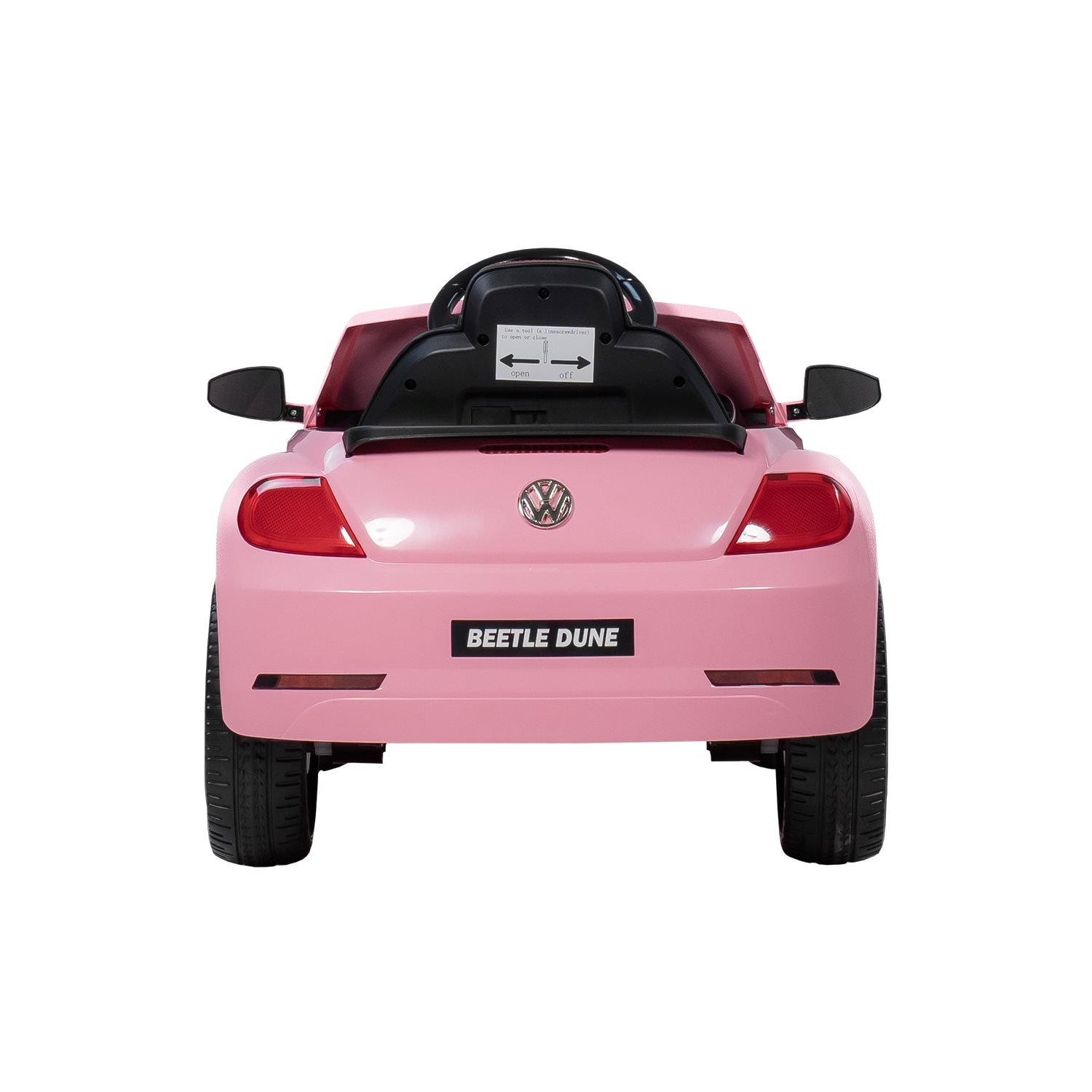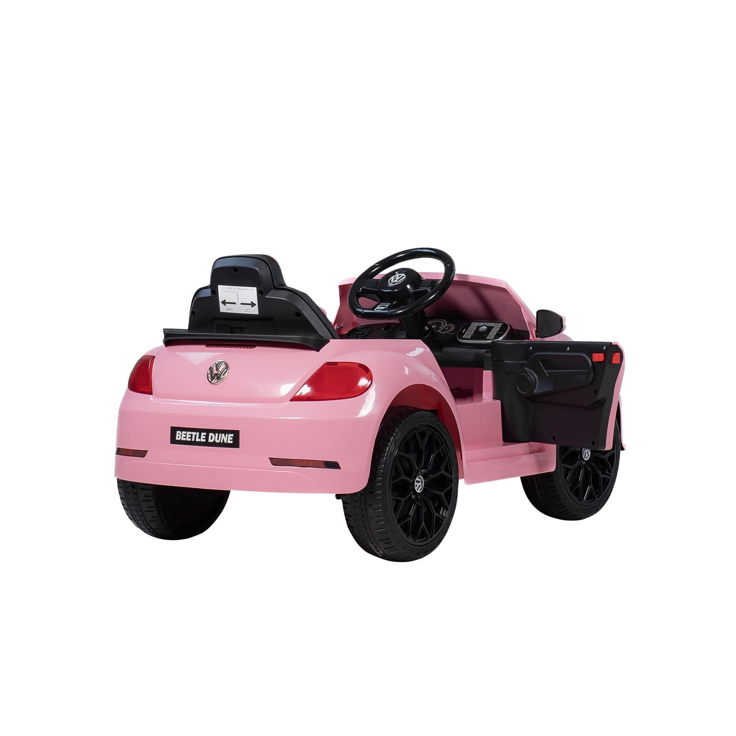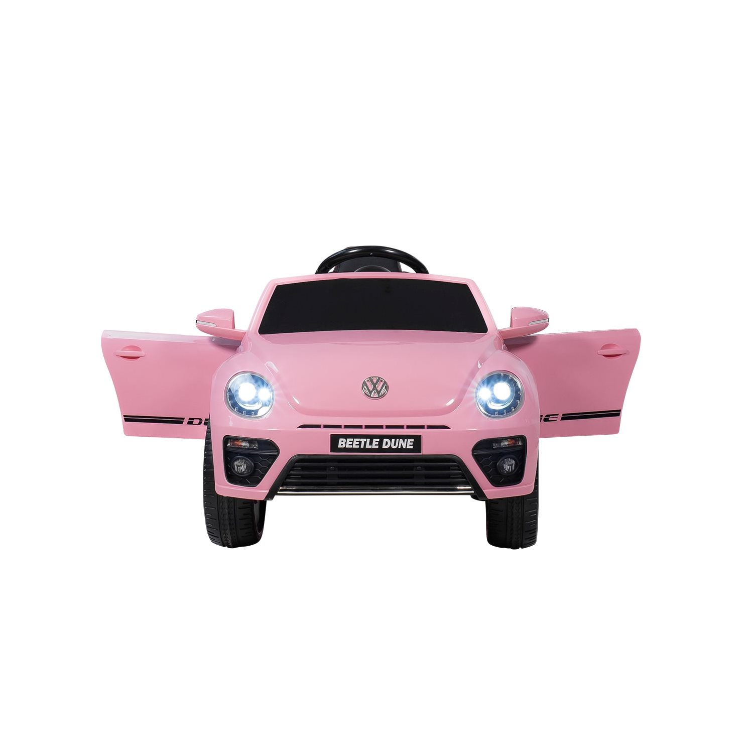 For musikelskende børn har bilen indbygget stereo med Bluetooth, USB, MP3 og AUX, så yndlingssangene nemt kan afspilles under køreturen. Volkswagen Beetle Rosa er beregnet til ét barn og har en maksimal belastning på 30 kg.