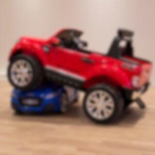 Stor og smart pickup i licenseret design fra Ford Ranger med "nyt" karrosseri. Med plads til to børn i kabinen på det luksuriøse sæde i brunt kunstlæder. Masser af fyrige funktioner som flere gear, døre, motorhjelm og bagsmæk til lad kan åbnes, støddæmpere på hjul, FM-radio, MP3-indgang, USB/SD osv. Ranger har desuden seje LED-lys i lygterne for, bag samt fjernlys. Leveres med digital 2,4G-fjernbetjening.