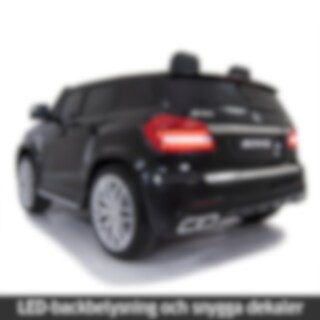 Elbil Mercedes GLS leveres med en mængde forskellige funktioner for at minde så meget som muligt om en rigtig bil. Modellen er en mindre kopi af den "rigtige" model som du finder hos bilforhandleren. En bilstereo med flere indspillede melodier samt mulighed for at tilslutte MP3-afspiller, USB-enhed eller SD-kort for at afspille din egen favoritmusik. Der er lys i forlygterne, hvilket giver effektive køreture selv når det er mørkt udenfor.