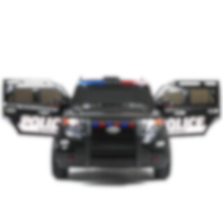 Sej politibil i SUV-udgave med fungerende blå blink, støddæmpere på hjul, døre der kan åbnes, gummidæk, LED-lys for- og bag mm. Bilen har desuden en mikrofon så den lille konstabel kan udråbe advarsler til omgivelserne. Der findes en separat knap til at tænde de blå blink og politisirenen når det er tid til at jage efter tyve! Indbygget stereo med en omgang indspillede sange samt mulighed for at tilslutte MP3-afspiller via inkluderede ledning (3,5 mm stik). Bilen har dobbelte motorer på 35W/st samt tre hastigheder frem og bakgear. Fjernbetjening 2,4G følger med. Blød start/stop.