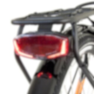 Litiumbatteriet i cyklen er fastgjort til rammen i en holder. Dette sænker cyklens tyngdepunkt en anelse sammenlignet med batterier i bagagebæreren, hvilket giver en mere fleksibel og sporty cykeloplevelse. Dette gør også, at bagagebæreren kan frigøres helt til f.eks. montering af barnestol. Det kan sagtens lade sig gøre at oplade batteriet, mens det sidder i cyklen, men det kan også tages ud og oplades et andet sted. Batteriet har kvalitetsceller, hvilket garanterer lang levetid og sikker præstation. Kapaciteten er 432 Wh, 36V 12Ah. Rækkevidden for elcykler er altid svær at specificere eftersom det er afhængig af mange forskellige faktorer, som hvor meget du hjælper til med at træde i pedalerne samt hvilket assistanceniveau du har valgt. For at give et cirka billede, har vi angivet rækkevidden til ca.: 45-75 eller 55-90 km per opladning.