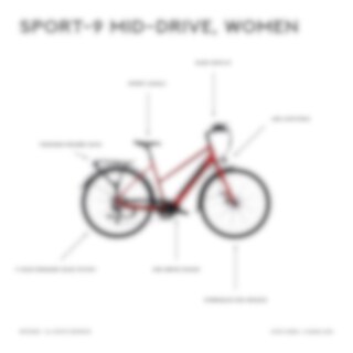 Evobike SPORT-9 Mid-Drive er en sporty elcykel i trekking-model. I det opdaterede design er litiumbatteriet integreret i stellet, hvilket giver en solid og fleksibel følelse kombineret med et moderne og stilfuldt design.