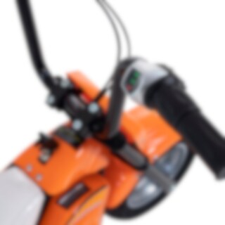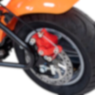 Modellen har solide skivebremser bagtil. Som forælder er det nemt at indstille motoren i to forskellige trin, på henholdsvis 10, og 18 km/t.