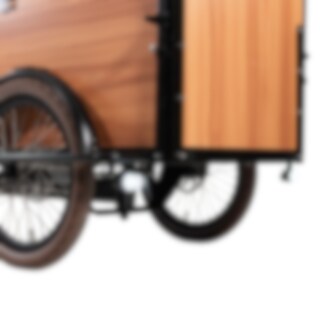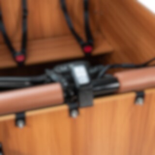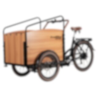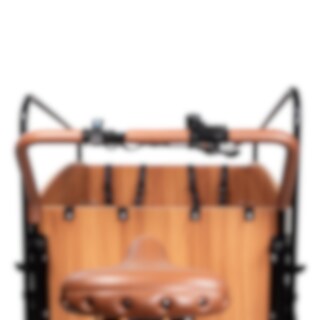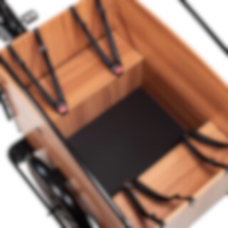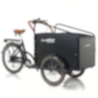 Den elektriske ladcykel Evobike Cargo Pro er en velbygget elektrisk ladcykel med fine komponenter og et stilfuldt design. Designmæssigt er Evobike Cargo Pro slank for en elektrisk ladcykel at være, hvilket i høj grad skyldes, at batteriet er skjult under en af sædebænkene i ladet. Cyklen har et sortlakeret stel og detaljer i børstet aluminium og læder, som giver elcyklen et luksuriøst look. I ladet er der dobbeltsæder med plads til fire (!) børn, bagage eller kæledyr. Hvert sæde har en justerbar trepunktssele, og der er højdejusterbare sikkerhedsbøjler langs langsiderne.