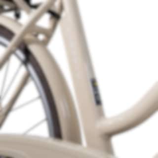 Classic-7 er en designmæssig fuldtræffer med sine harmoniske farvevalg, stilige læderdetaljer på håndtagene og matchende brune dæk. De lakerede skærme, kædeskærmen og bagagebærerne er ton-i-ton med rammen, hvilket skaber et luksuriøst og ensartet udtryk med tydelig retroinspiration.