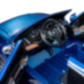 Elbilen er udstyret med døre, der kan åbnes, LED-lys og opbevaringsplads foran for ekstra realisme. Derudover har den en blød start- og stopfunktion samt fjernbetjening med tre hastighedsniveauer, så forældre kan have fuld kontrol.