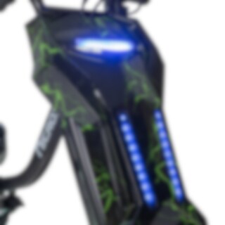 Et højdepunkt er belysningen. Farverige LED-lys i hjulene og under sædet skaber et supercool indtryk både i dagslys og mørke. Derudover er der en fremadrettet LED-lampe, der lyser vejen op ved kørsel i skumringen.