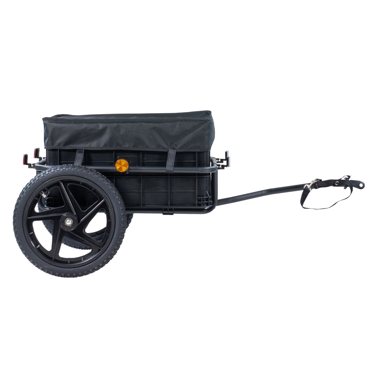 Den store plastkurv på 610 x 420 x 310 mm gør det nemt at pakke og organisere dine ting. Med plasthjul og oppustelige dæk på 16 tommer kan du være sikker på, at vognen ruller jævnt og sikkert, uanset terræn.