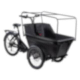 Den rummelige ladkasse er lavet af EPP, et let, stærkt og vejrbestandigt materiale, der klarer det nordiske klima. Indeni er der plads til to børn, som sidder sikkert fastspændt med trepunktssele. Ladkassen leveres med bøjler og beslag, så du nemt kan montere et vejrbeskyttende kaleche, der kan købes som tilbehør.