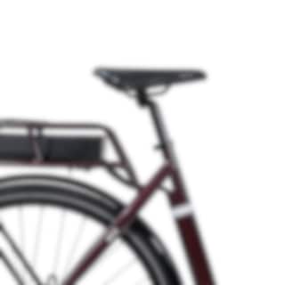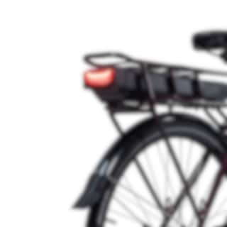 Litiumbatteriet er placeret på bagagebærerenog kan oplades direkte på cyklen eller tages af for opladning.