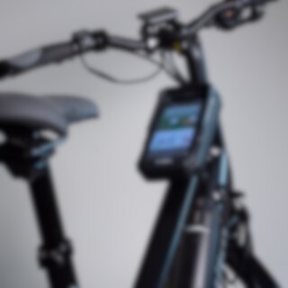 Vandtæt (IPX6), drejeligt mobiltaske i forstærket materiale. Dette placerer du blot på cyklens styr eller stel.